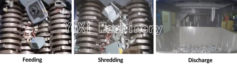 The core working principle of a four-shaft shredder is based on the coordinated operation of four high-speed rotating shafts. All four shafts are equipped with carefully designed blades, and the blades on adjacent shafts are arranged in an interlaced pattern. After the equipment is started, the motor drives the four shafts to rotate synchronously at high speed. Once the material enters the shredding chamber, it is immediately subjected to multiple actions by the blades. Firstly, the high-speed rotation of the blade generates a powerful shearing force, cutting the material from different directions and causing it to be torn in multiple dimensions. Meanwhile, the high-speed rotation of the shaft also generates centrifugal force, which throws the materials towards the inner wall of the shredding chamber, where they collide violently with the tooth plates on the inner wall, further promoting the crushing of the materials. Under the combined effect of various forces such as shearing, collision and rubbing, the material is gradually refined to the required size and finally discharged through the outlet at the bottom.