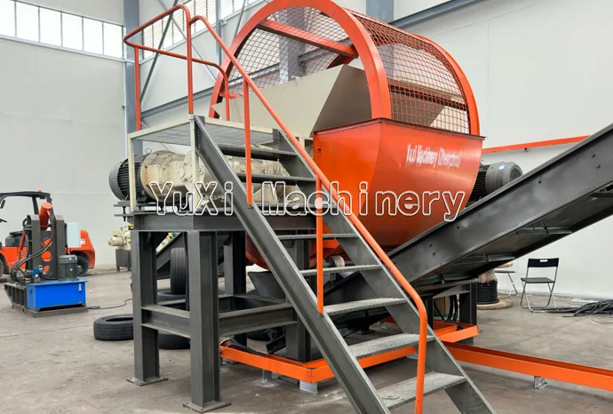 The entire tire is forcibly pushed into the shredding chamber by a hydraulic feeding system, ensuring continuous and stable feeding.